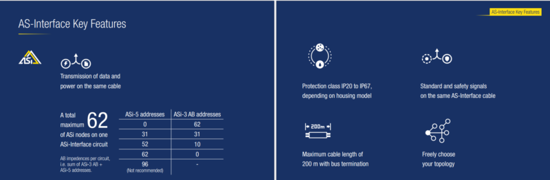 – Nó có thể sử dụng cáp có vỏ bọc cho giao tiếp AS-i, nhưng điều này có thể ảnh hưởng tiêu cực đến tổng chiều dài của mạng.