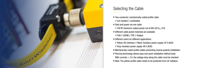 – Cụ thể hơn, nó có thể truyền tín hiệu AS-i thông qua cáp điện tròn, chẳng hạn như cáp cảm biến có đầu nối M12, M8.