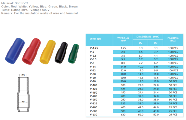 • Định mức dòng điện cực đại: 80°C, 600 VOLTS max